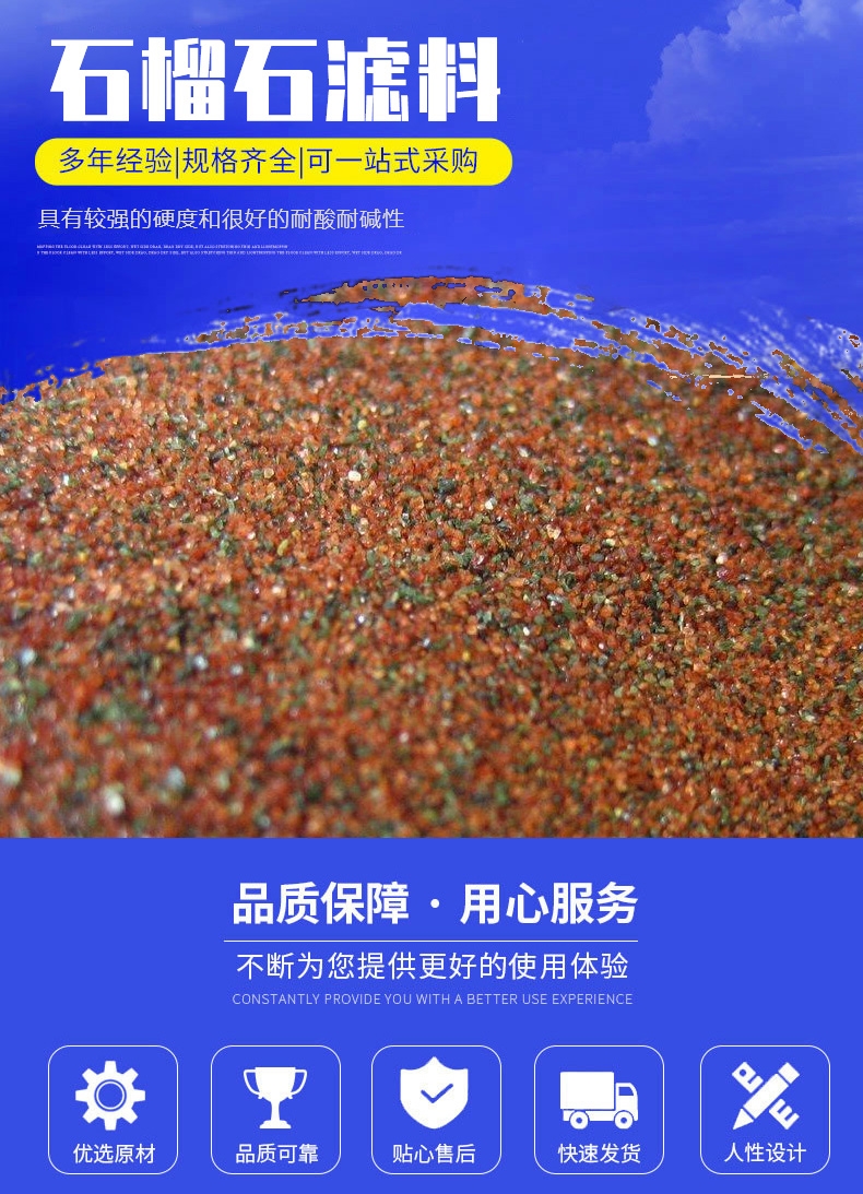 尊敬的镇安【石榴石滤料】的客户您好,非常有缘您能在茫茫的信息中找到我们!技改助力,自动化升级,重研发业内皆知是中大通净水的经营之道!视技术为脉,搏时代心跳!中大通净水是石榴石滤料产品服务商,自企业成立以来,诠释精造力量,提升企业形象,潜心深耕于厂矿废水工业用水饮用水净化处理领域,竭力为厂矿废水工业用水饮用水净化处理客户提供重创新细致入微的石榴石滤料产品! 服务从心开始,满意由您见证,以下是中大通净水为您整理的石榴石滤料产品的相关资料信息,由于篇幅有限,您不太清楚的地方请即刻致电中大通石榴石滤料产品技术咨询电话:【13703843981】!