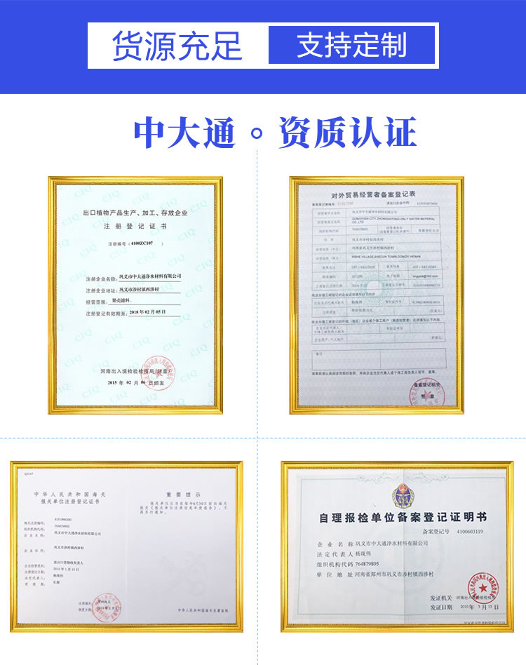 巩义市中大通净水材料有限公司是一家生产水处理材料的综合型企业,本厂科研开发新型处理产品,为客户提供优良的蜂窝斜管、滤头滤帽、鲍尔环、多面空心球、纤维球等填料及陶粒滤料、无烟煤滤料、活性炭等滤料和聚合氯化铝、聚丙烯酰胺等净水药剂,是大、中、小型自来水厂、钢铁、石油、电力、化工、冶金、环保、印染、造纸、制药等水处理行业的理想净水材料。我公司产品广泛用于城镇供水、排水以向及化工、冶金、电力、油田、造纸、工业污水处理等领域。