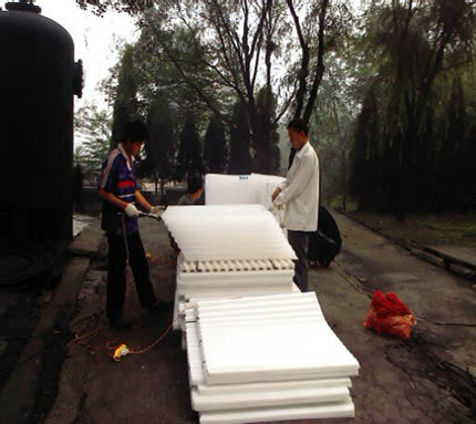 4、斜管填料烫接完成后体积庞大将占很大空间,提前预留堆放场地;