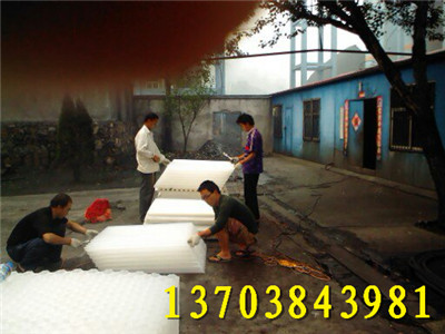 1、打开六角蜂窝斜管填料包装,将片填料平放于地面,取第二片填料置于片填料之上,检查填料的切口,需保证60°角、并呈六角蜂窝状,检查无误后开始焊接;