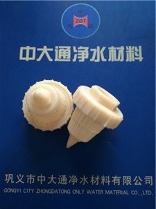 - 长柄滤头滤帽是曝气生物滤池布水布气系统主要关键部件,是使进入滤池的污水能在滤板下方的配水室内混合均匀并通过配水滤头均匀流过滤料层,并且该布水系统作为滤池正常运行时布水用外,也作为定期对滤池进行反冲洗时布水、布气用。