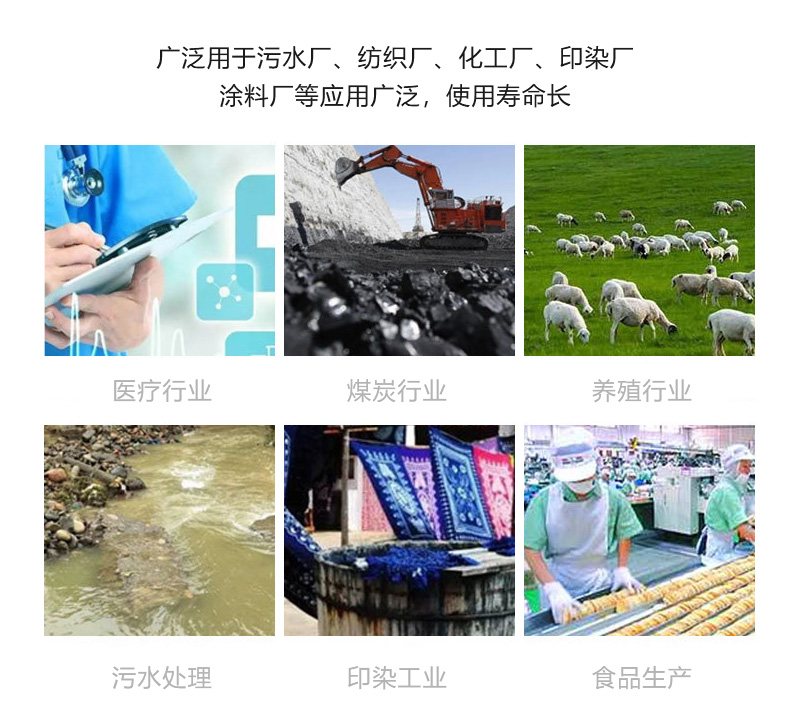 5、各种工业废水处理:印染废水、皮革废水、含氟废水、重金属废水、含油废水、造纸废水、洗煤废水、矿山废水、酿造废水、冶金废水、肉类加工废水、污水处理。