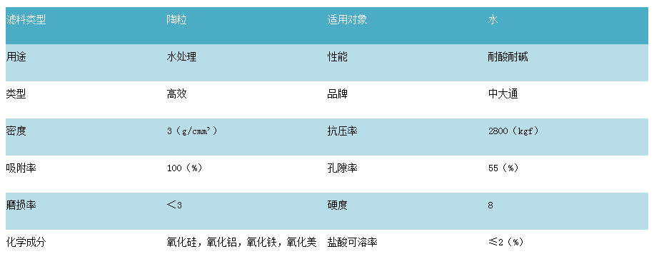陶粒滤料采用优良陶土,粘土,粘溶剂等经团磨、筛分、煅烧加工而成,具有表面坚硬、内部多微孔、孔隙率高等特点。以好氧活性污泥作为接种,进水两周即可达到曝气生物滤池的处理效果。